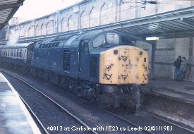 40012 at Carlisle with the 10:40 Carlisle - Leeds Service 02/01/1985 |
