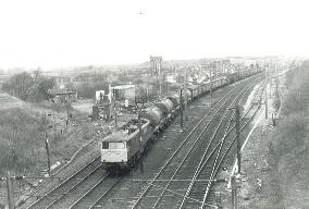 Above. 85032 passes the former Carlisle Kingmoor TMD 31/03/1989. The depot is now seeing a new lease of life as the depot for theDRS fleet and classes 20,33 and 37 can be seen there each day. |