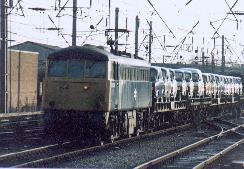 Above. 85034 approaches Carlisle with a train of new Ford vans bound for Scotland c.1984 |