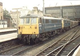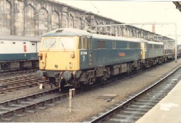 86037 + 86??? at Carlisle with a Northbound train originating from Shap c.1984 |