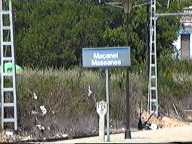 Lower middle. Station sign for Macanet. The Temperature on the platform was alot higher than on the coast. The Station is surrounded by trees and there is very little visible of Macanet Town. Passangers tend to work across the track while changing platforms something that would be stamped down on in this country. |